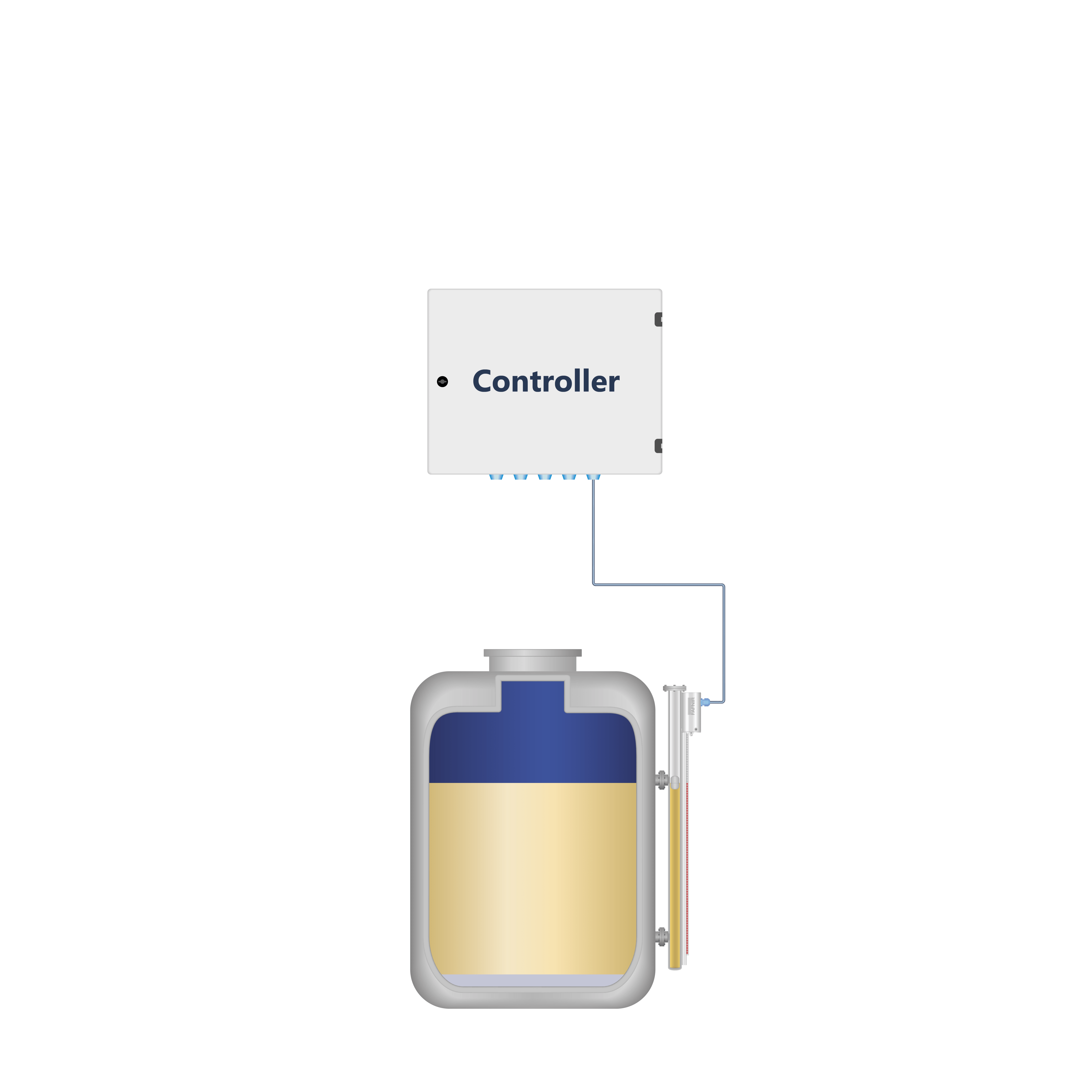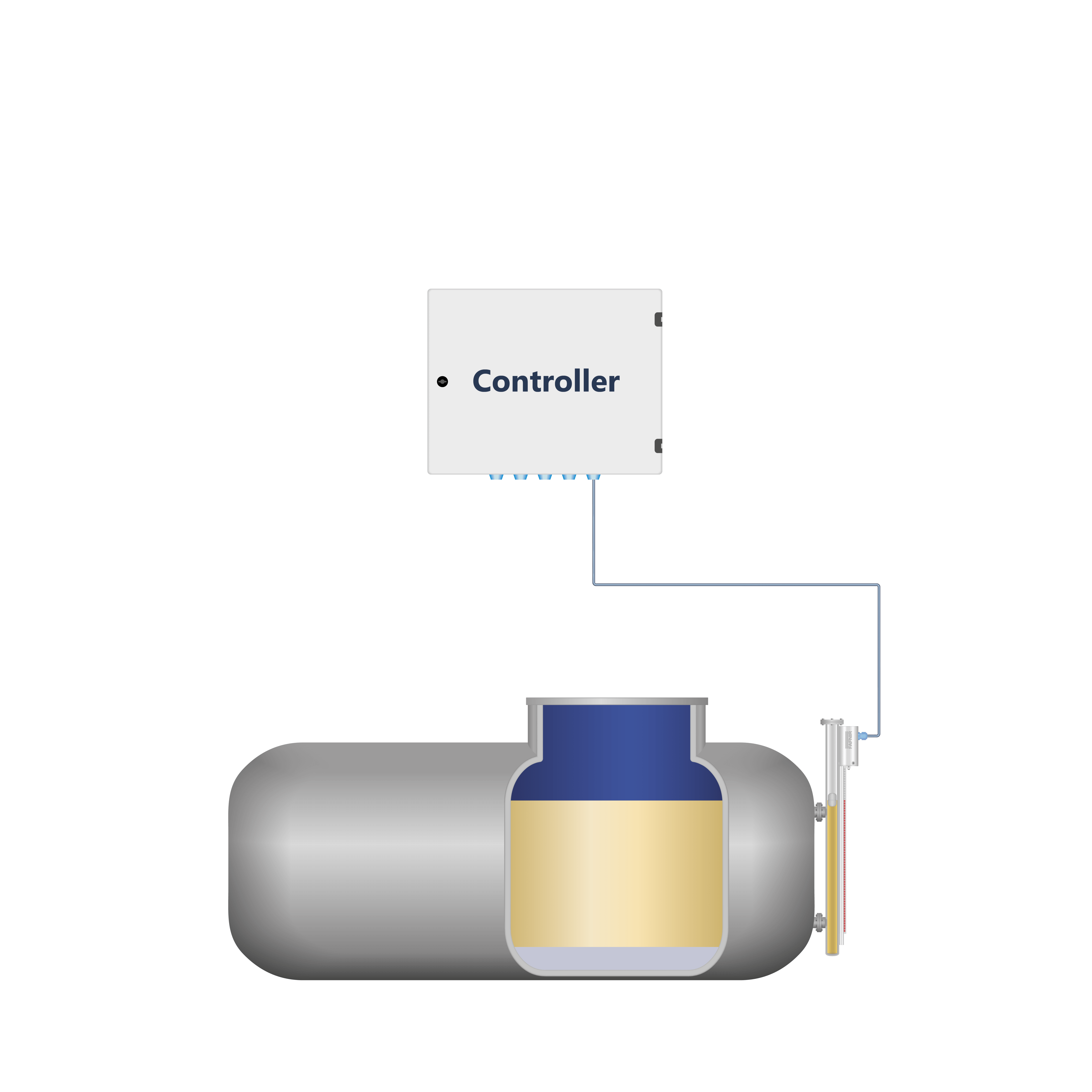 Das Magnetfeld dieses Schwimmers kann zusätzlich von einem TORRIX ausgewertet werden, der am Äußeren des Behälters angebracht ist.